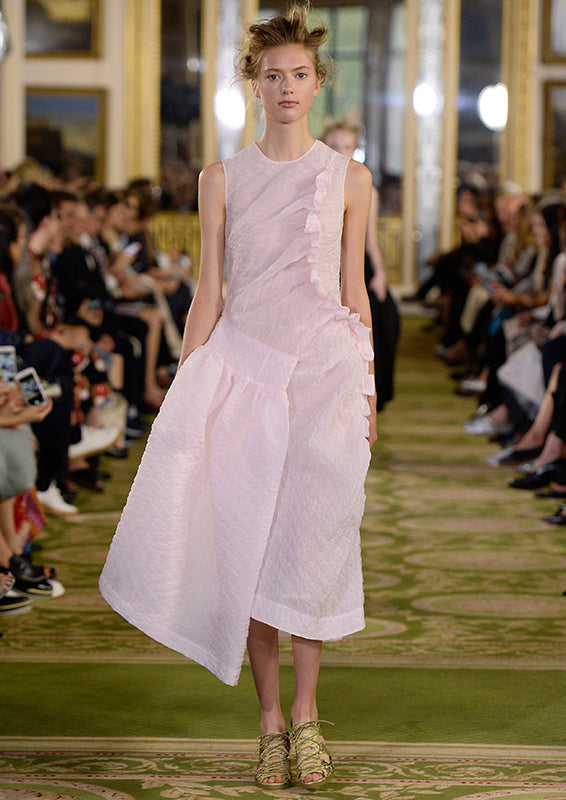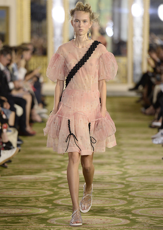 Kyoto, Kinbaku, the moss forest. Rope, bow, ties, bound, found. Pink Kimono tulle and wine. Tobacco stains, Tobacco sponge, black cloque. White embroidered plastiv. Man- made and natural, flowers and cars. Wire and grass in Khaki embellished rope. Crystal ears, jelly feet. Ropes and ties and tension, unison. I saw a bride in the bamboo forest.