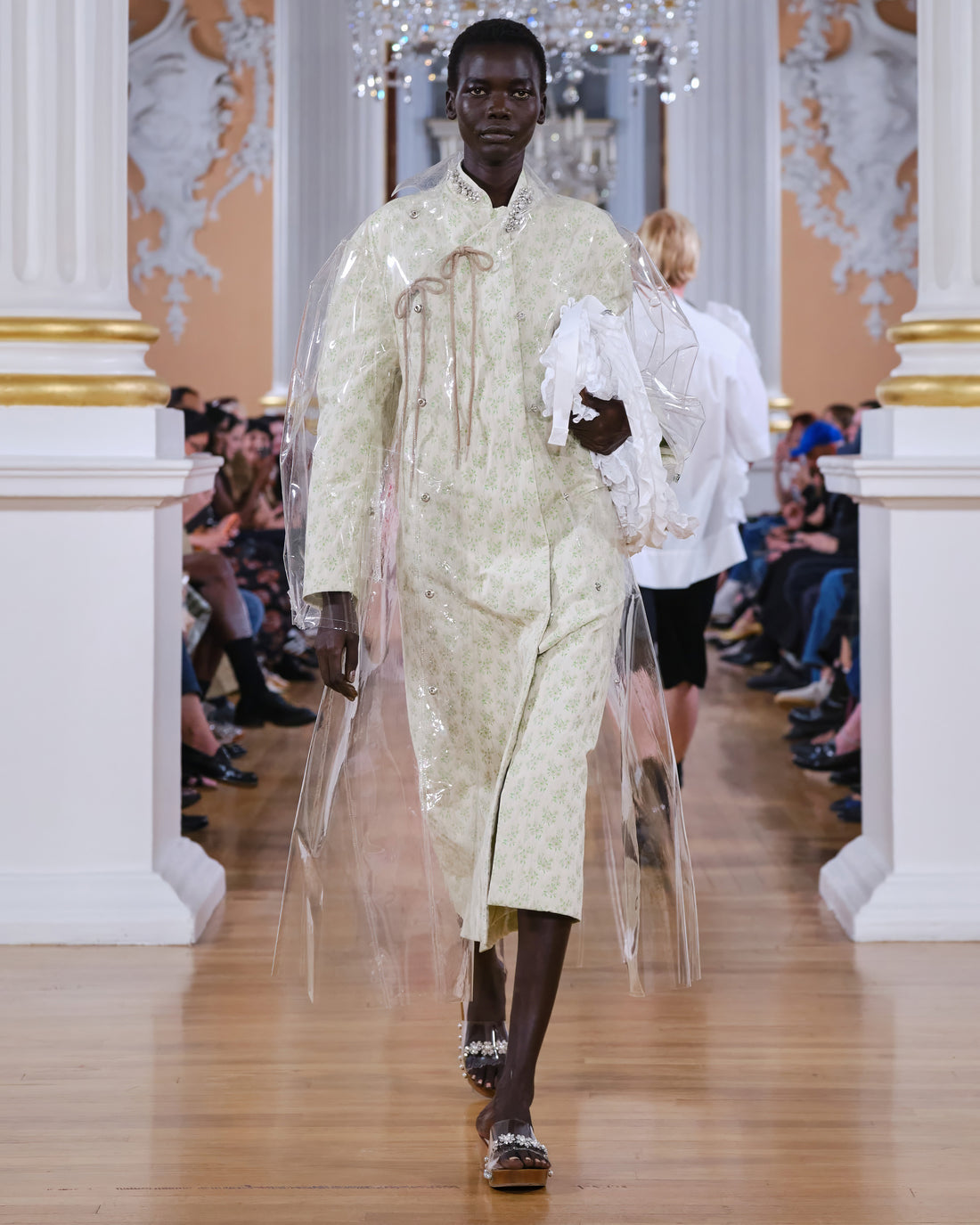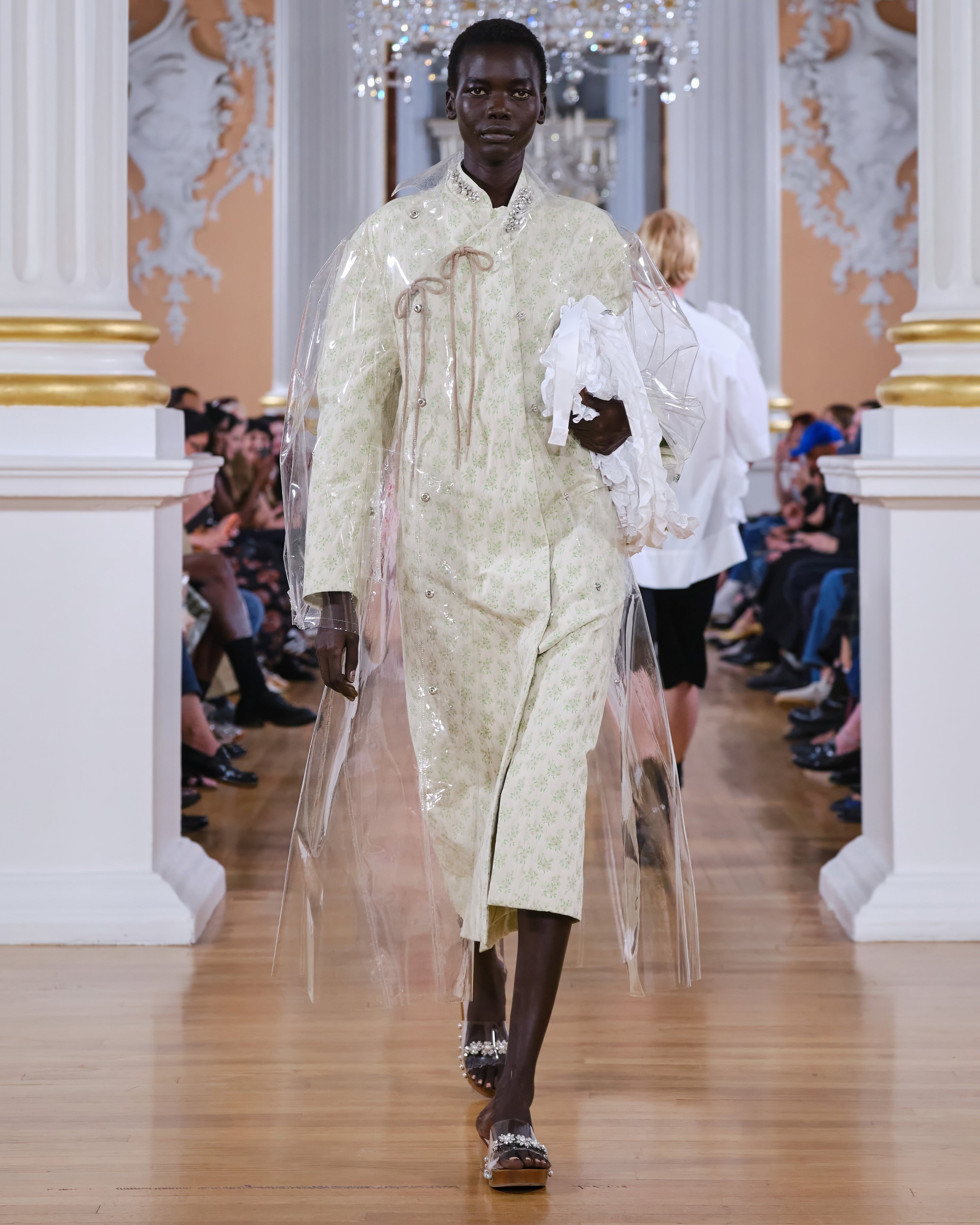 16 exaggerated red cagoule over ivory organza hoop skirt