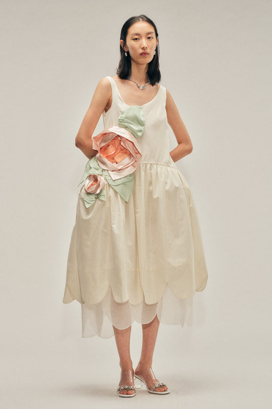 Pressed Rosette Tilted Neck Petal Hem Dress