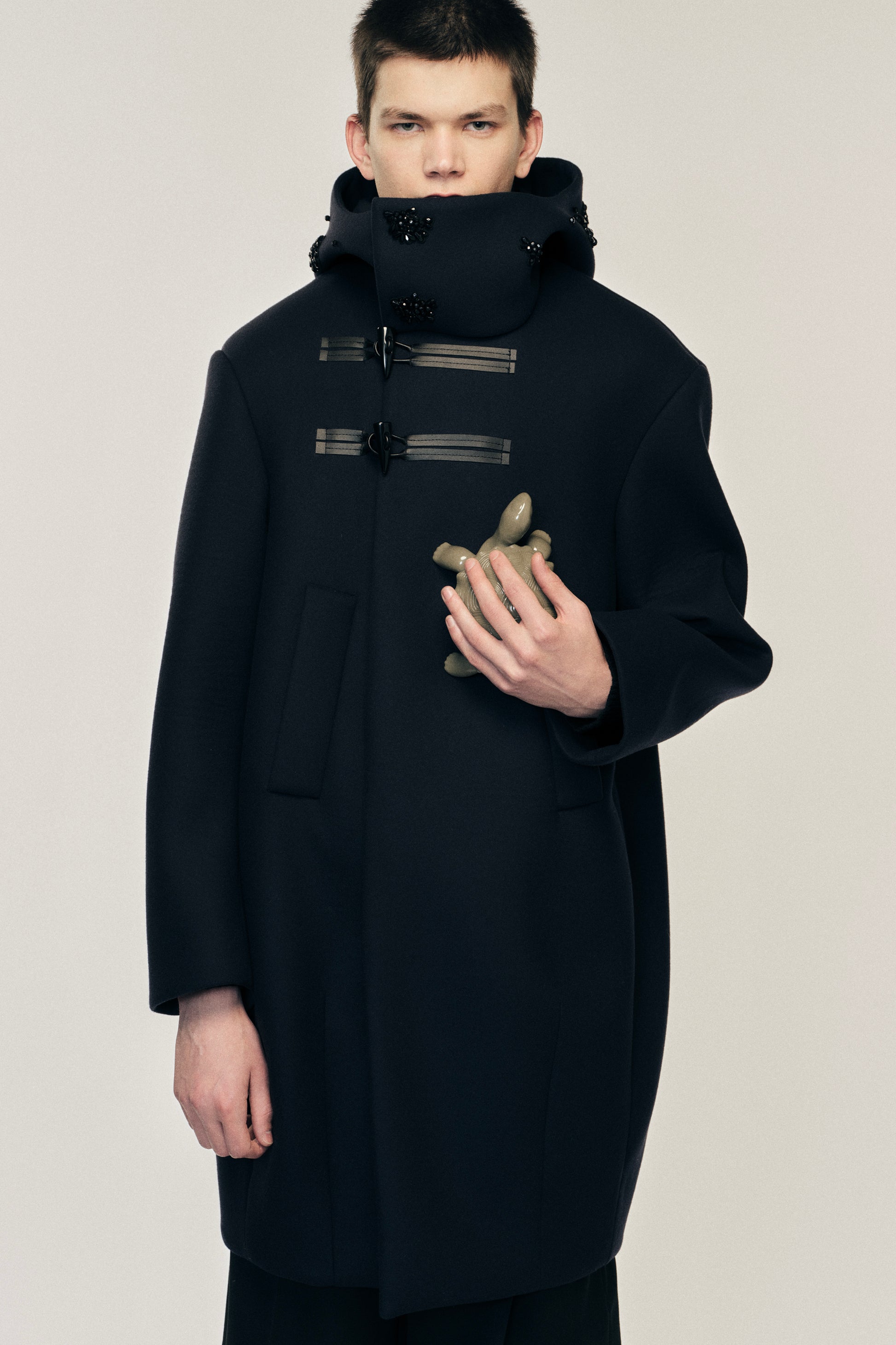 Embellished Back Flap Cocoon Duffle Coat