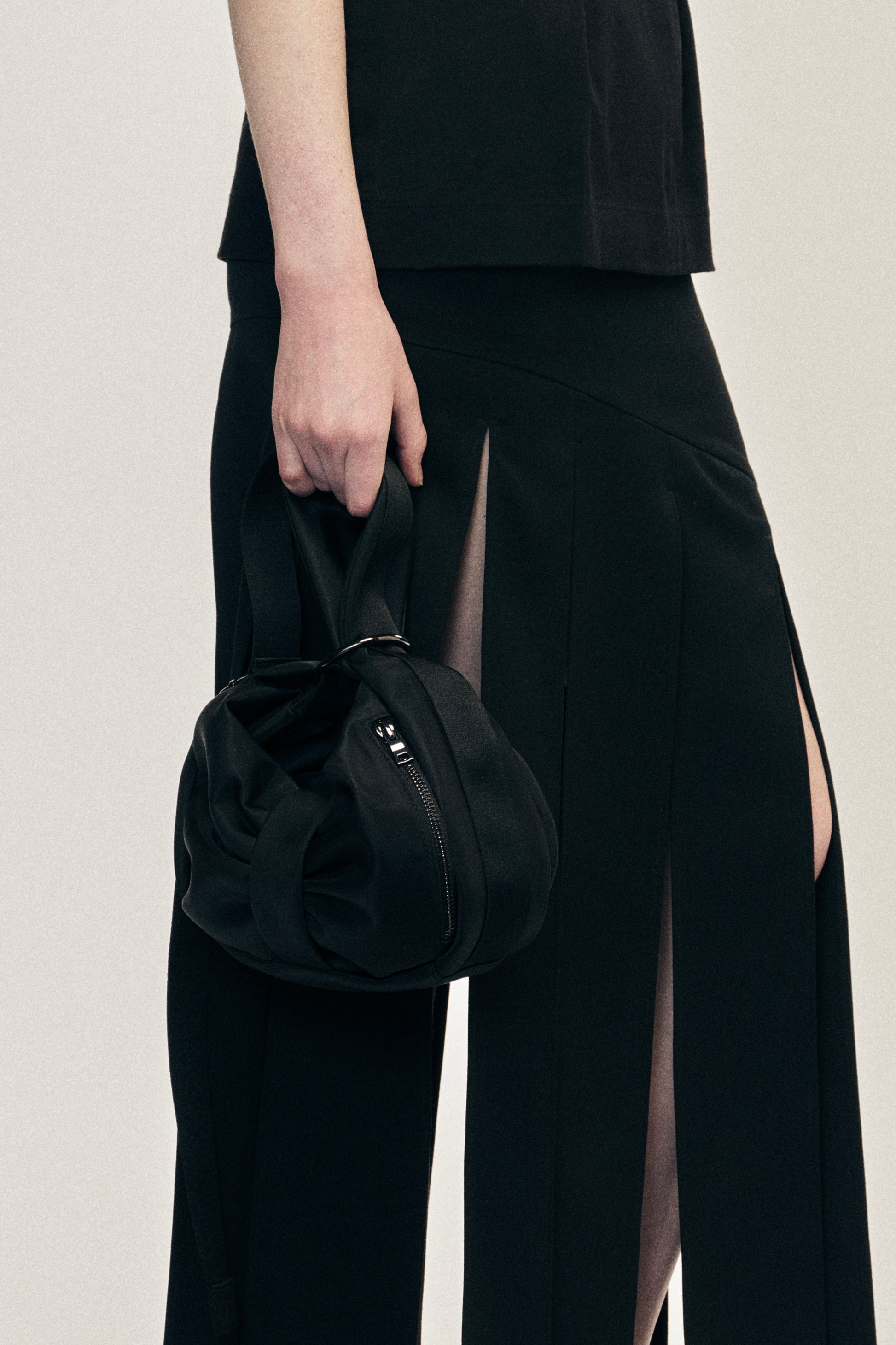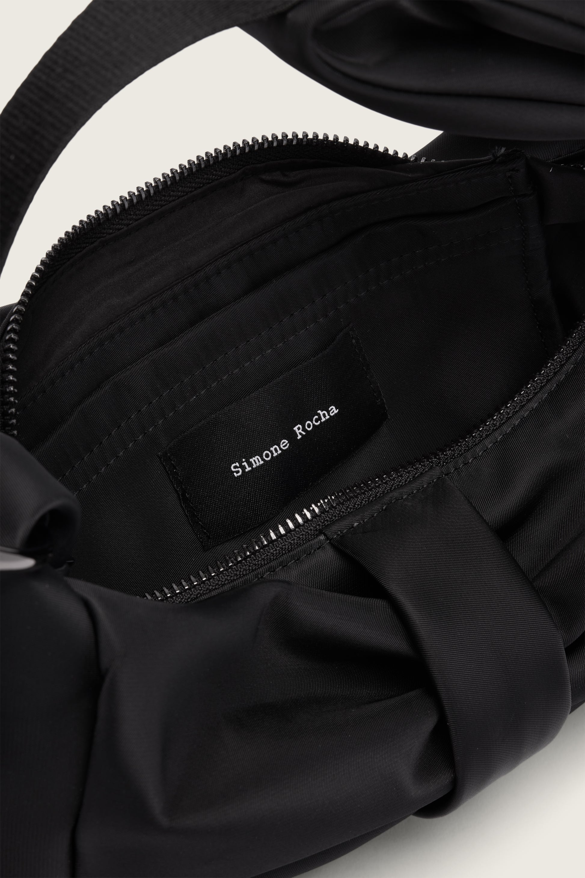 Newest addition to Simone Rocha's Utility bag range, a more playful alliteration for the nylon bag for its bow detail at the front and back. The bag is designed to be worn as either a clutch or shoulder bag.