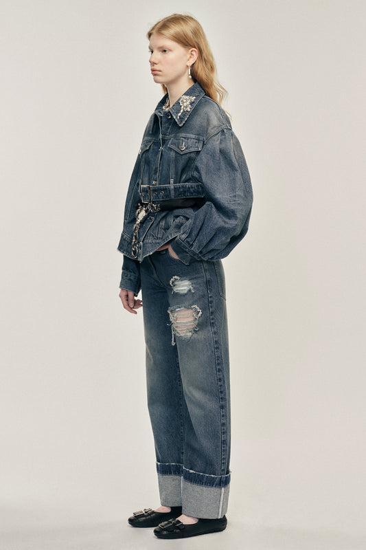 Embellished Wide Leg Puddle Jeans