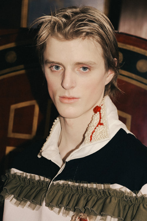 Ruffle Shoulder Patch Tunic Shirt