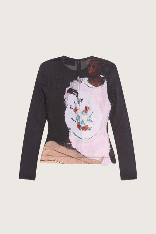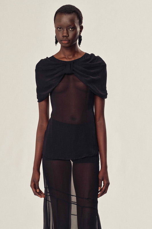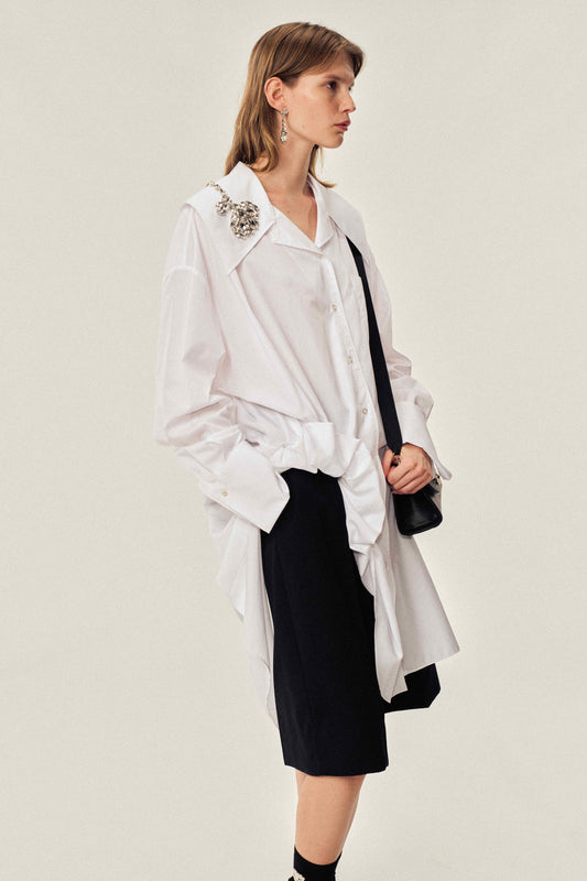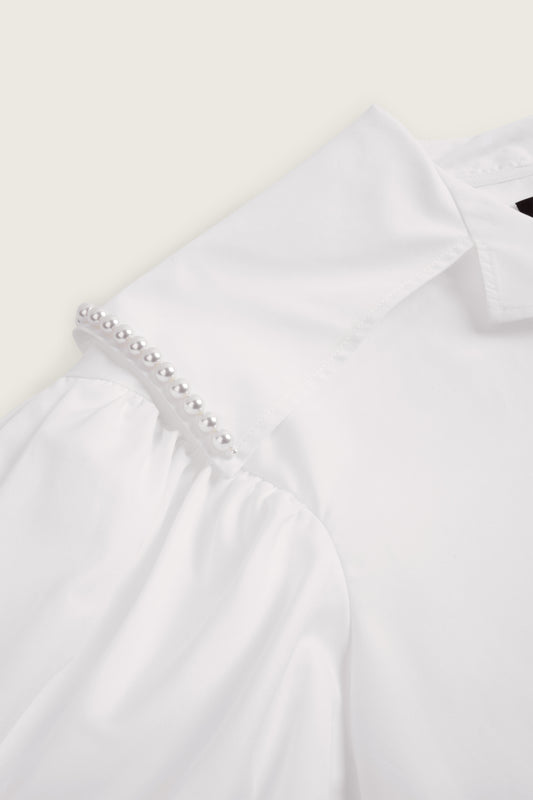 Beaded Cropped Sailor Collar Puff Sleeve Shirt