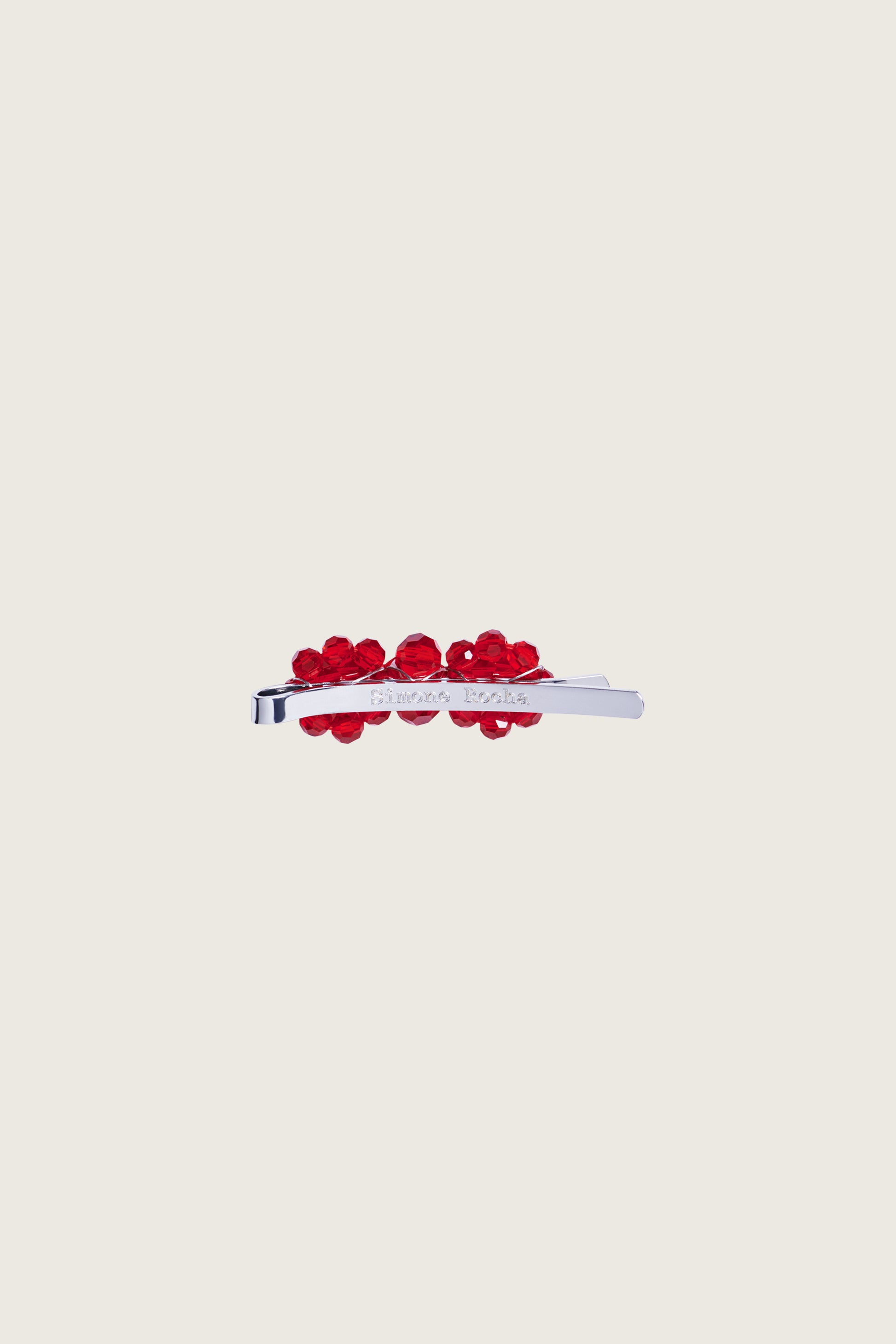Simone Rocha’s mini crystal hair clip feature crystal beads made into floral clusters on a logo embossed slide. The mini size is a more playful addition to the brand’s classic crystal range.