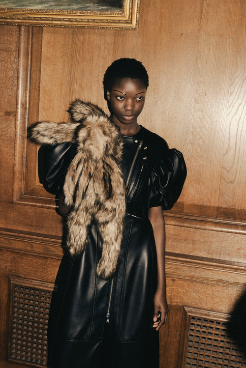 Sculpted Petal Sleeve Biker Dress