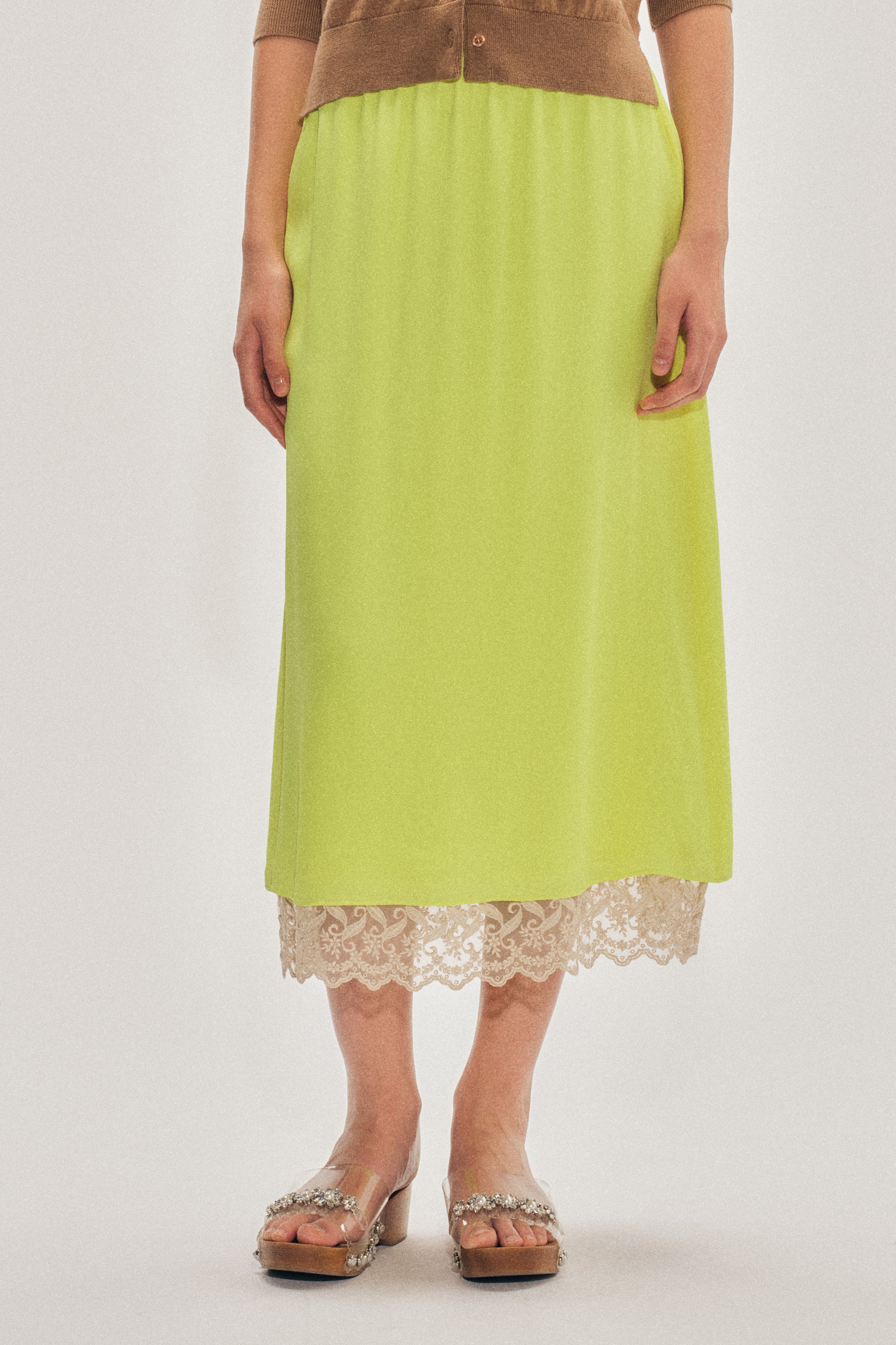 The Lace Trim Negligee Skirt is a new addition to the brand's underpinnings, featuring an elastic waistband and an a-line fit for ease and signature lace trim.