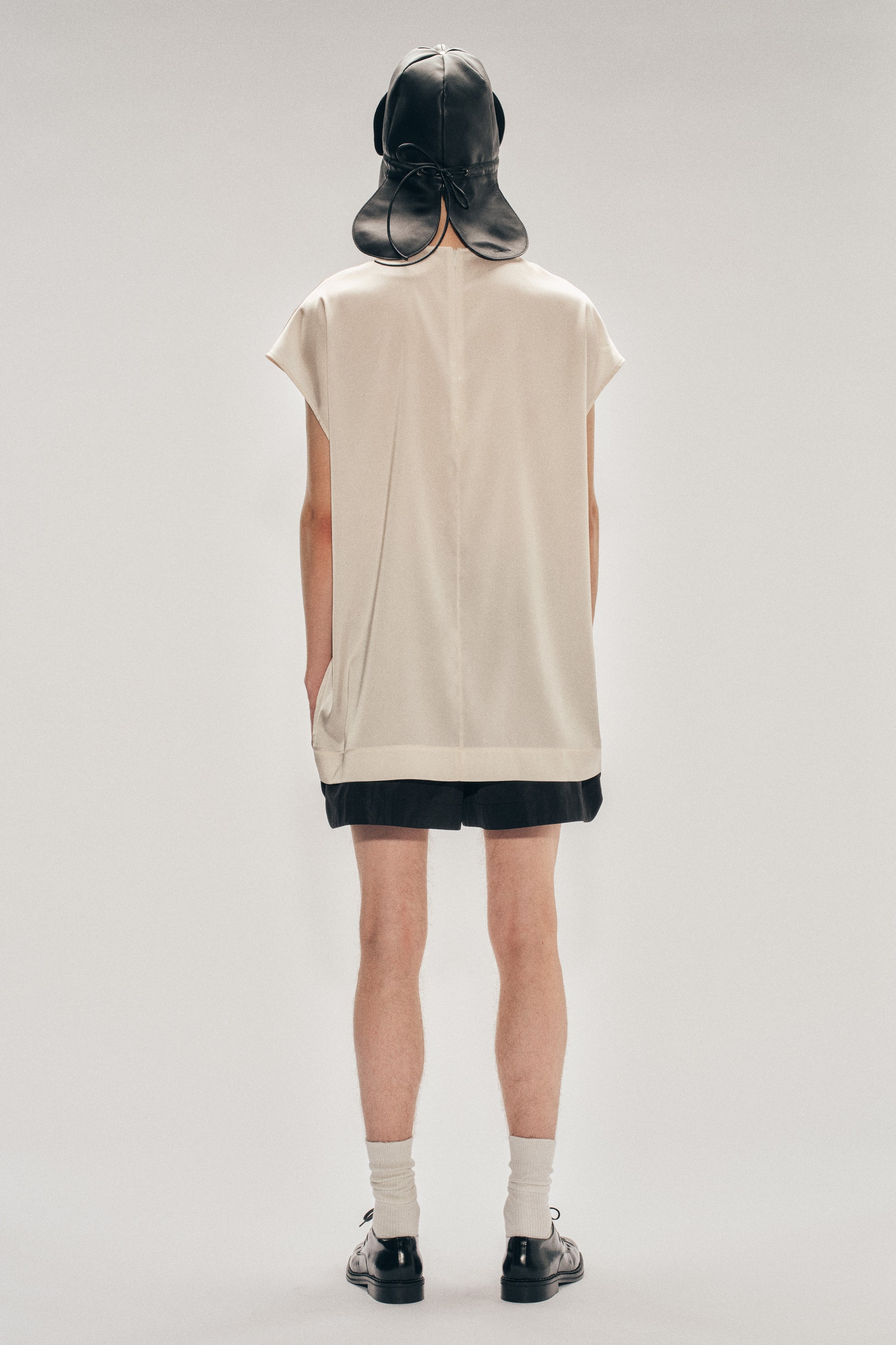 Satin smock top with an extended length designed to drape or tuck with ease. Features a softened print of a tall poppy in bloom.