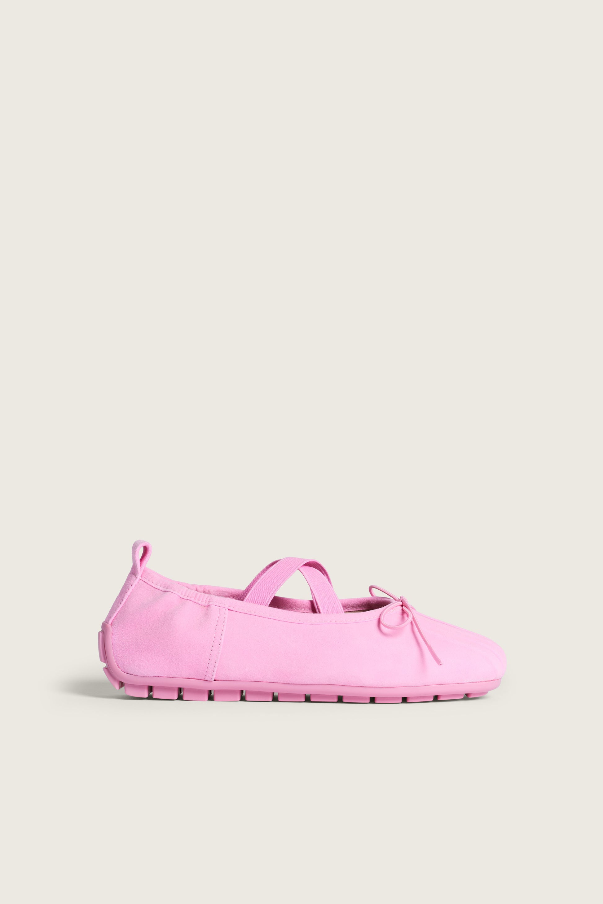 The brand's classic sporty ballerina pump gets a subtle update with an additional bow at the band. It features a more tactical sole, a contrast to suede upper.