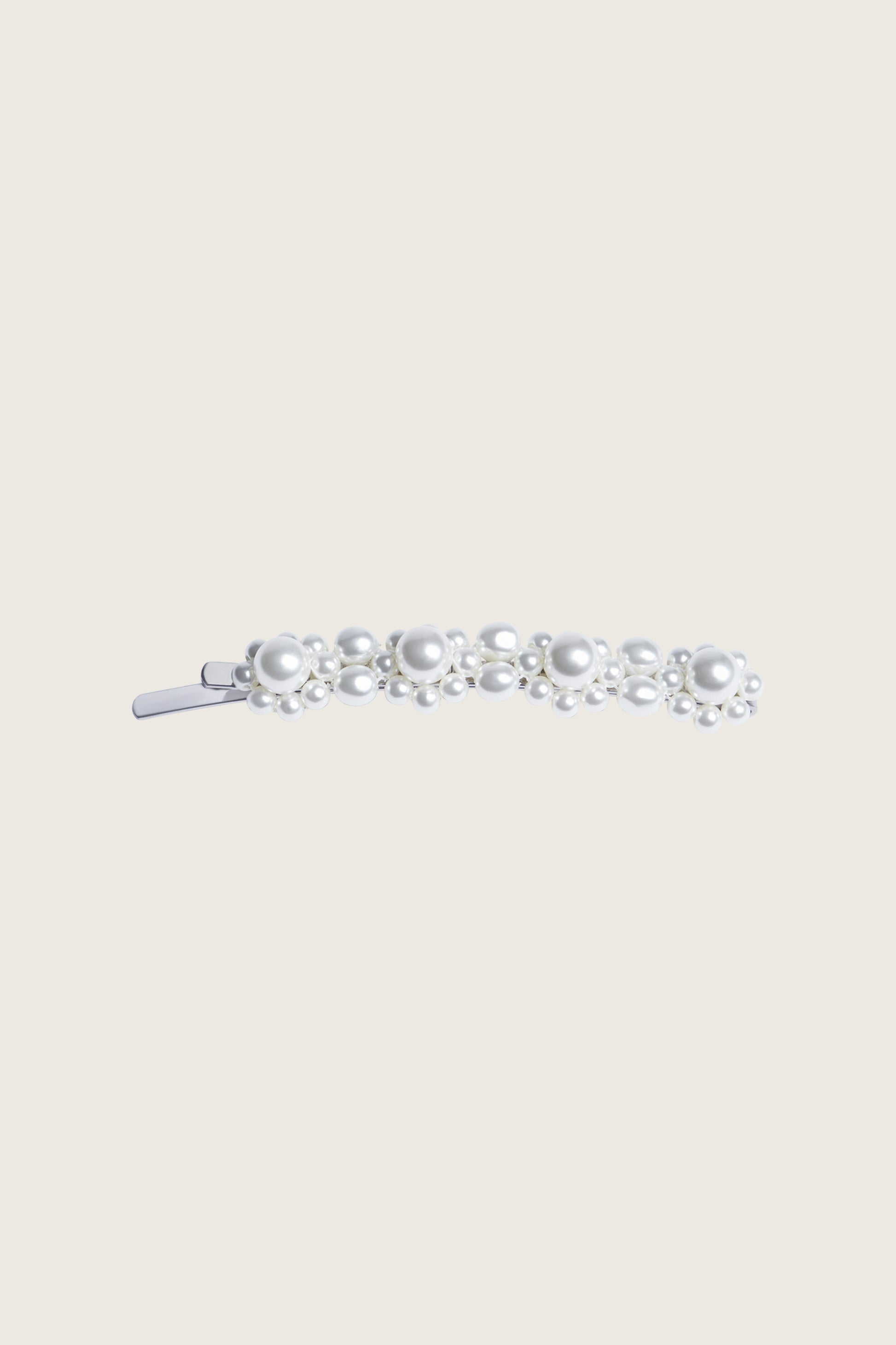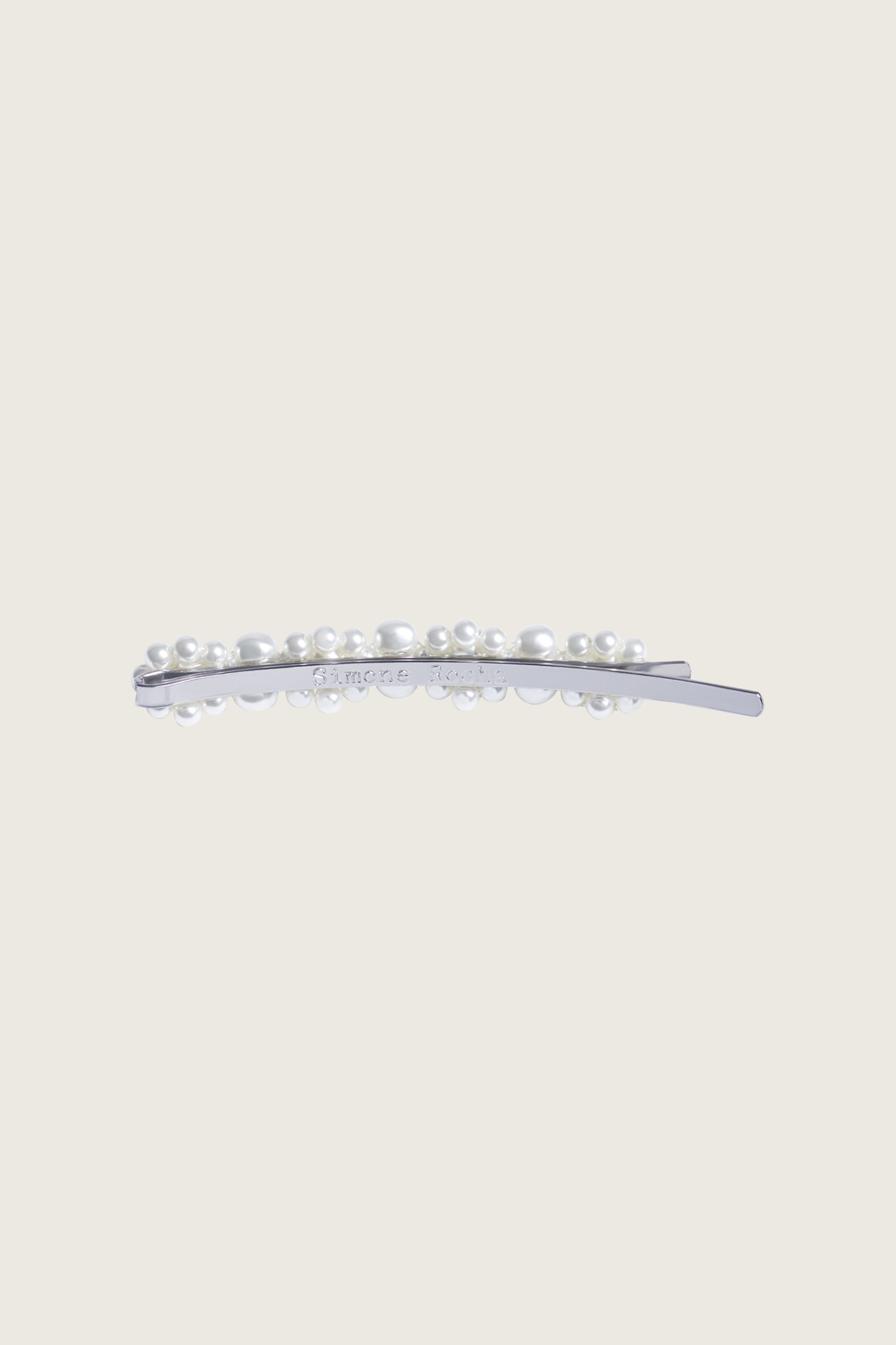 Simone Rocha pearl hair clip, the signature hair accessory has become a styling stable for any look. It features four faux pearl flower embellishments placed on a logo embossed slide.