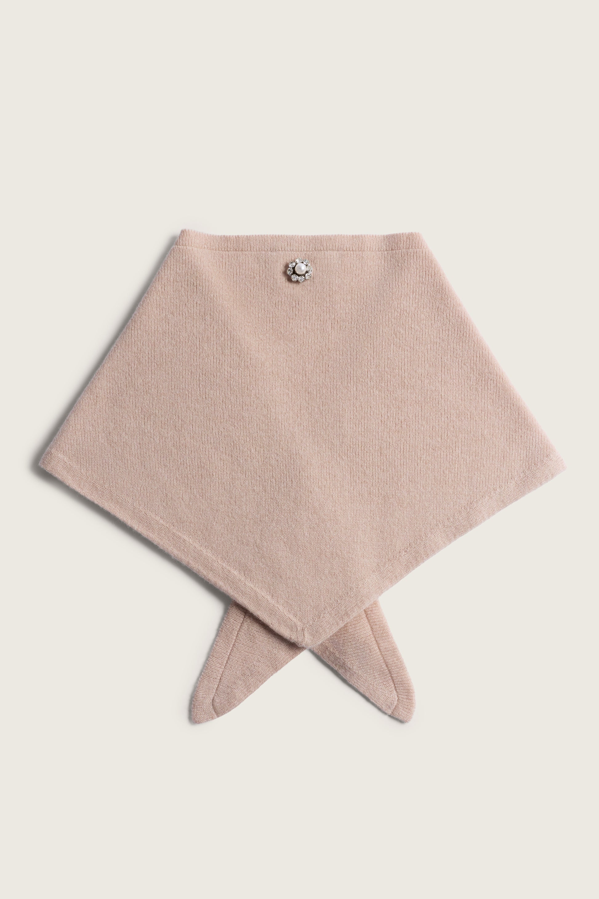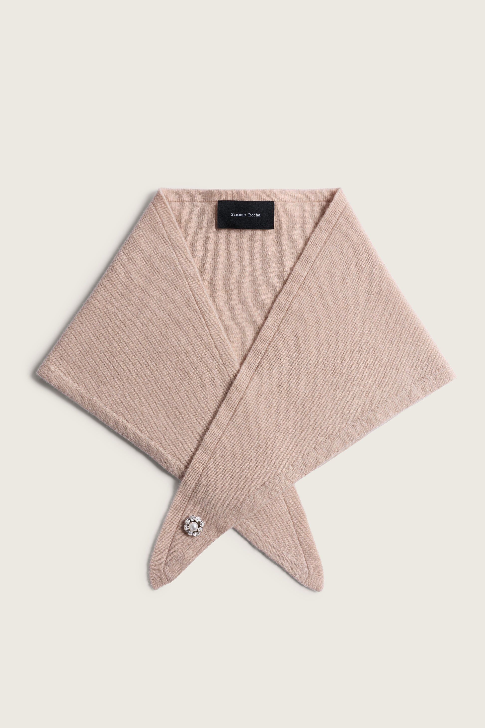 Knitted cashmere neckerchief featuring signature faux pearl and crystal daisy embellishments. Ideal for casual wrapping with an elegant flair.
