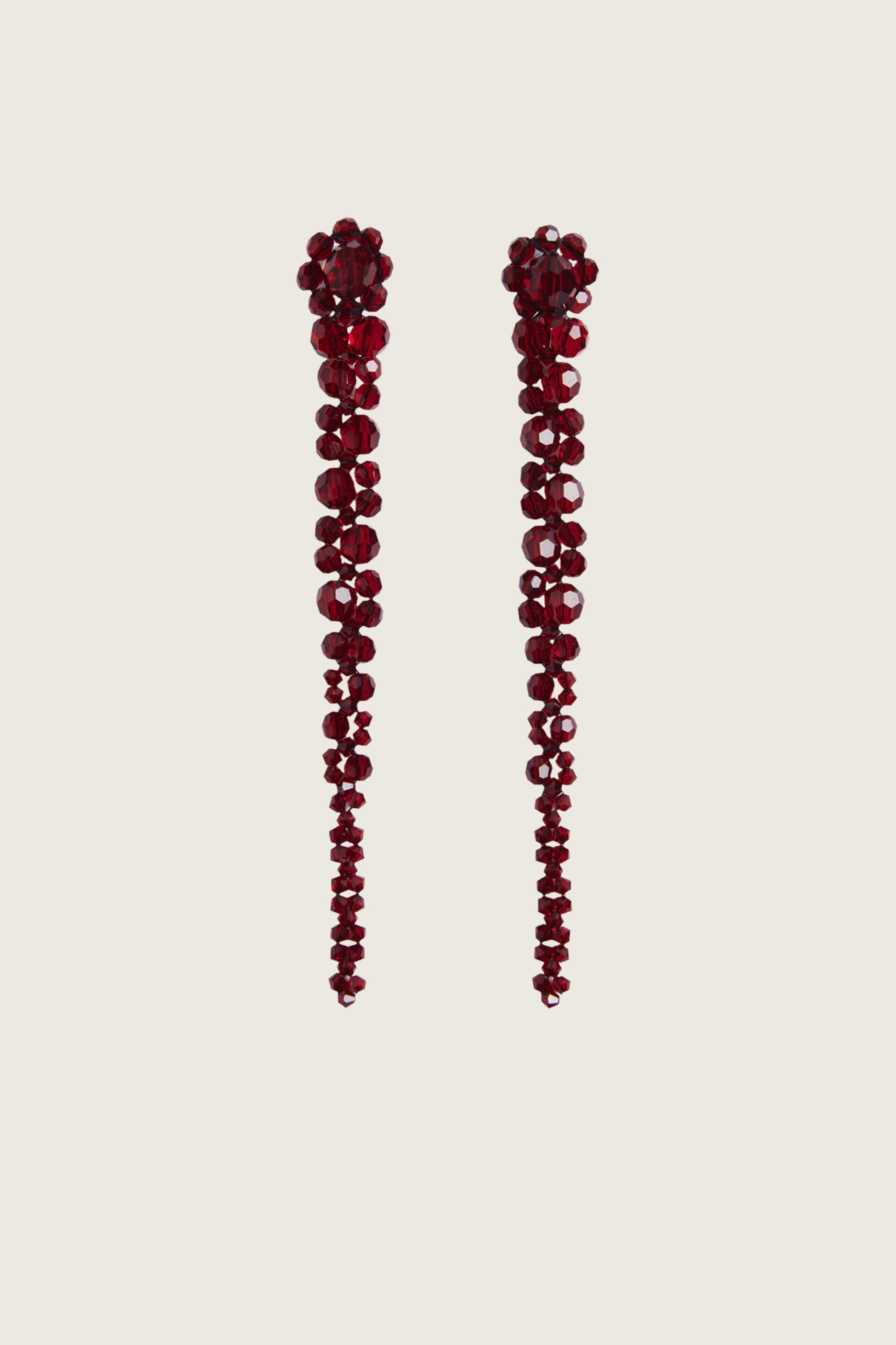 The classic Drip Earrings - floral inspired, crystal beaded drip earrings in classic shades and seasonal colourways. From the beaded flower top of the earring, crystals in decreasing sizes cascade down the "stem" of the drip earrings.