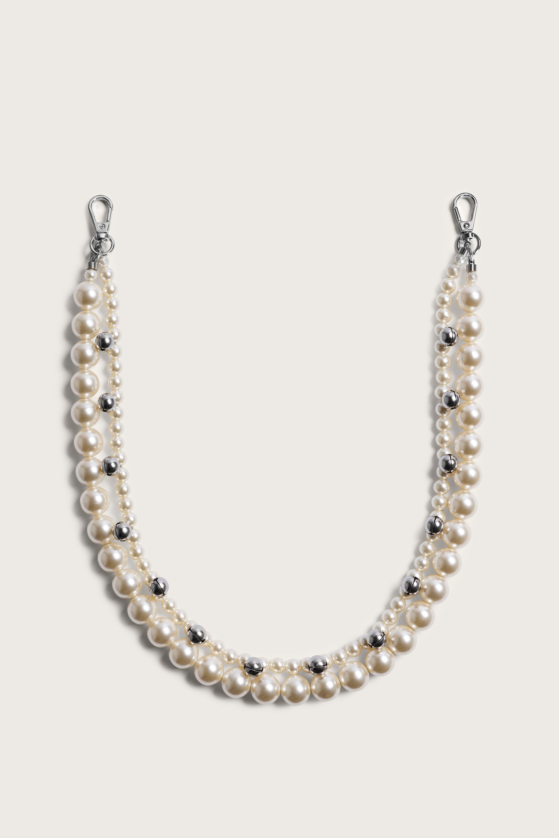 Simone Rocha detachable pearl bag strap with bell charms throughout. The perfect accessory for the Valentine bag, as seen on the runway.